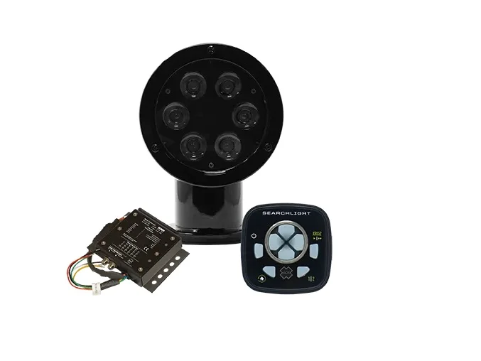 Designed for small-to-mid-size pleasure crafts and small commercial vessels, this rugged searchlight boasts a new 6 LED lamp with over 100,000-candela power. Built for the rough and tough marine environment, the new RCL-50 utilizes the same proven die-cast aluminum housing with all new internal mechanical controls to power and rotate the ultra-bright LED lamp.